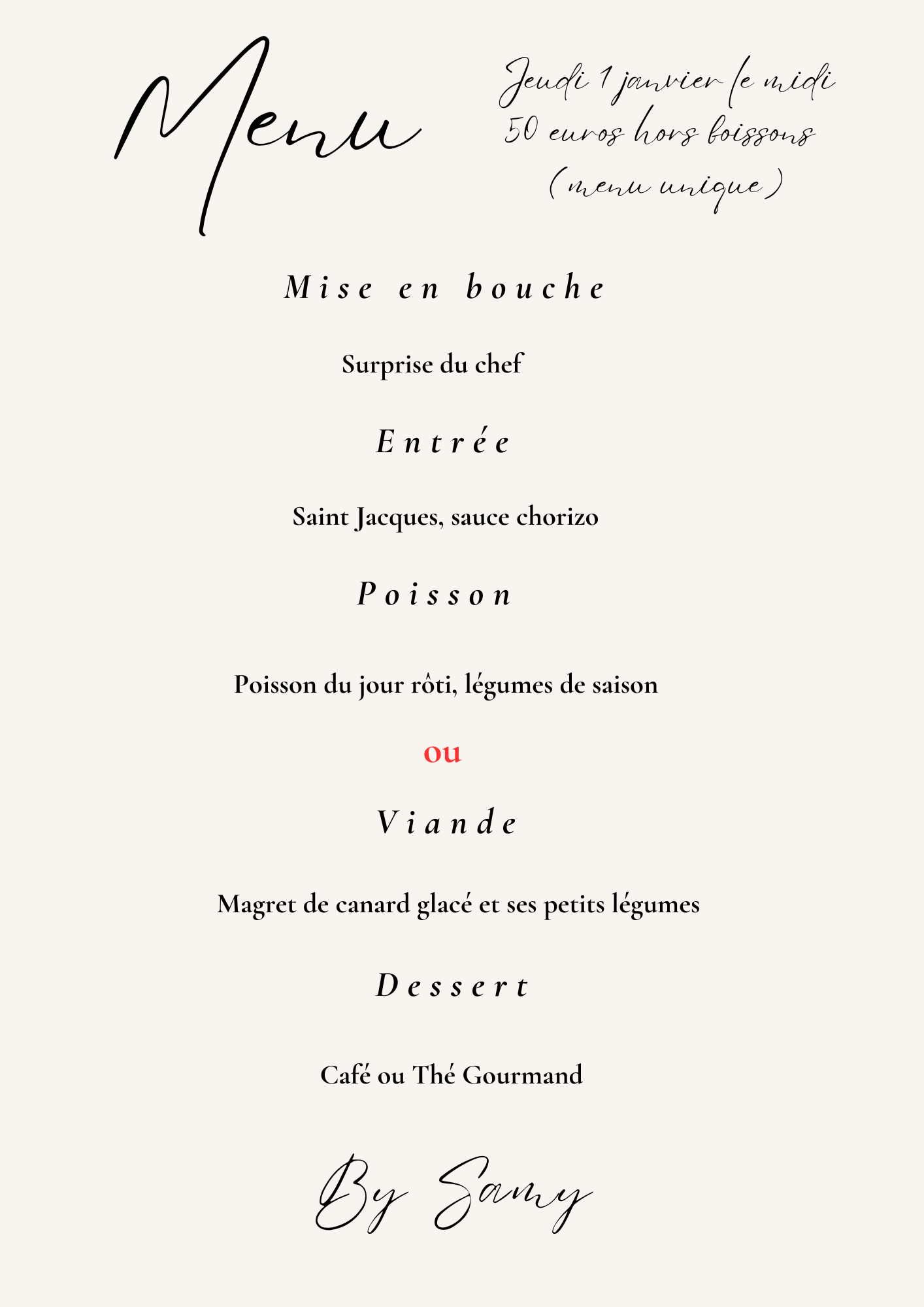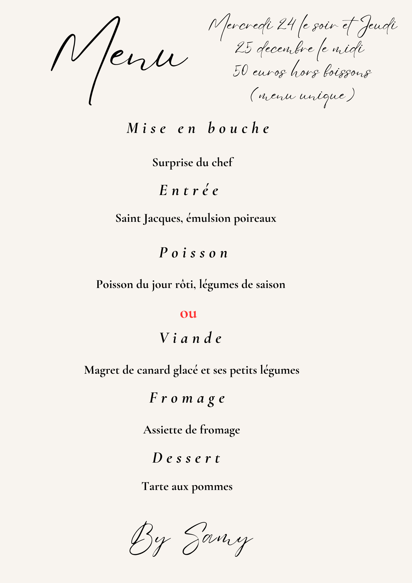 Menu Fêtes
