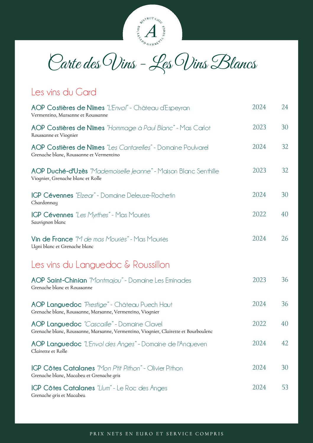 AOP Languedoc, Grenache blanc, Roussanne, Marsanne, Vermentino, Viognier, Clairette, Bourboulenc