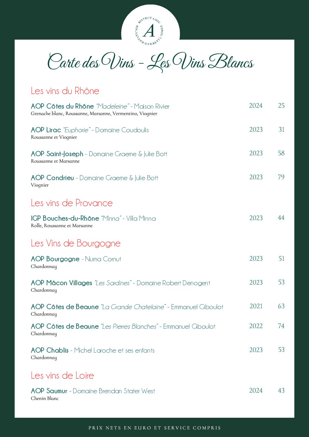 AOP Côte du Rhône, Grenache blanc, Roussanne, Marsanne, Vermentino, Viognier