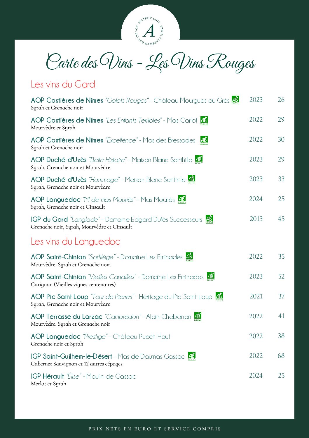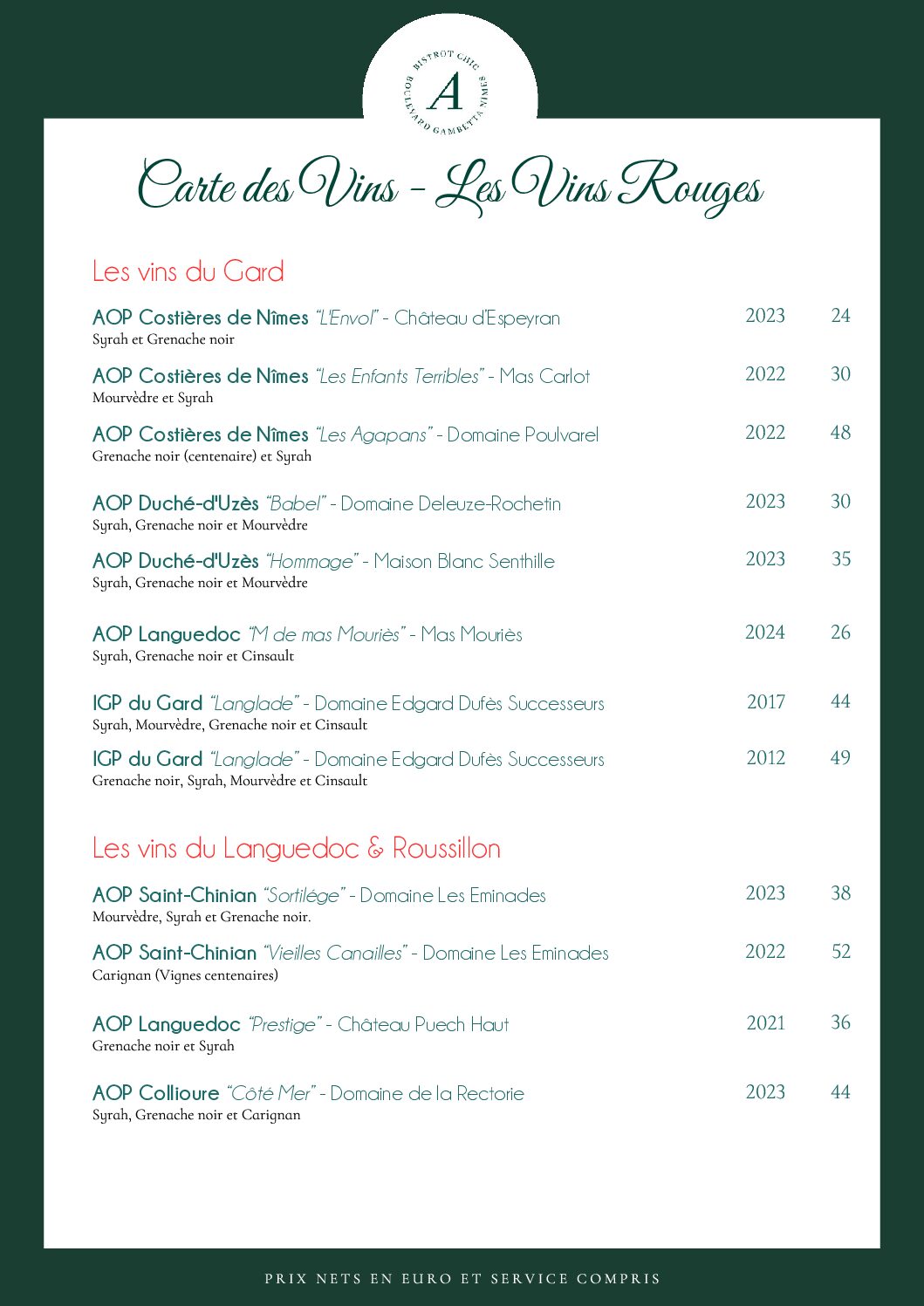 L’accent c’est aussi une passion des vins et une carte sélectionnée