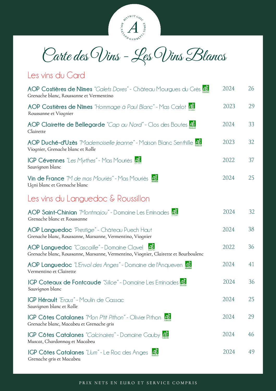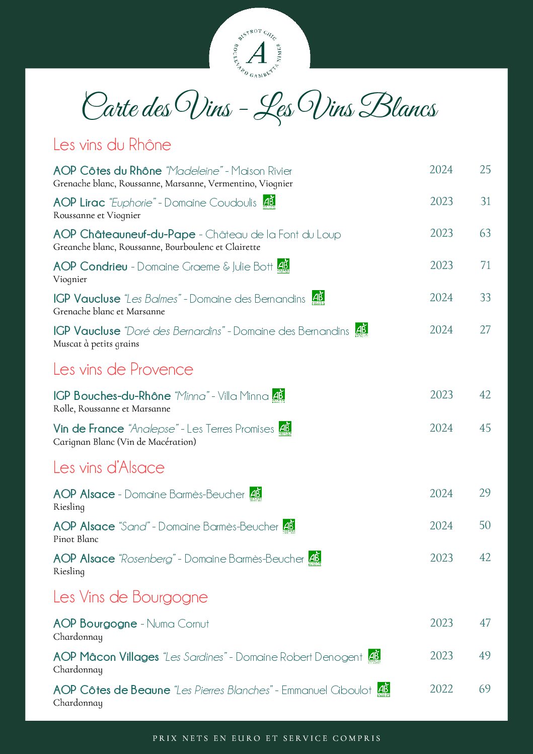 Vins Blancs au Verre