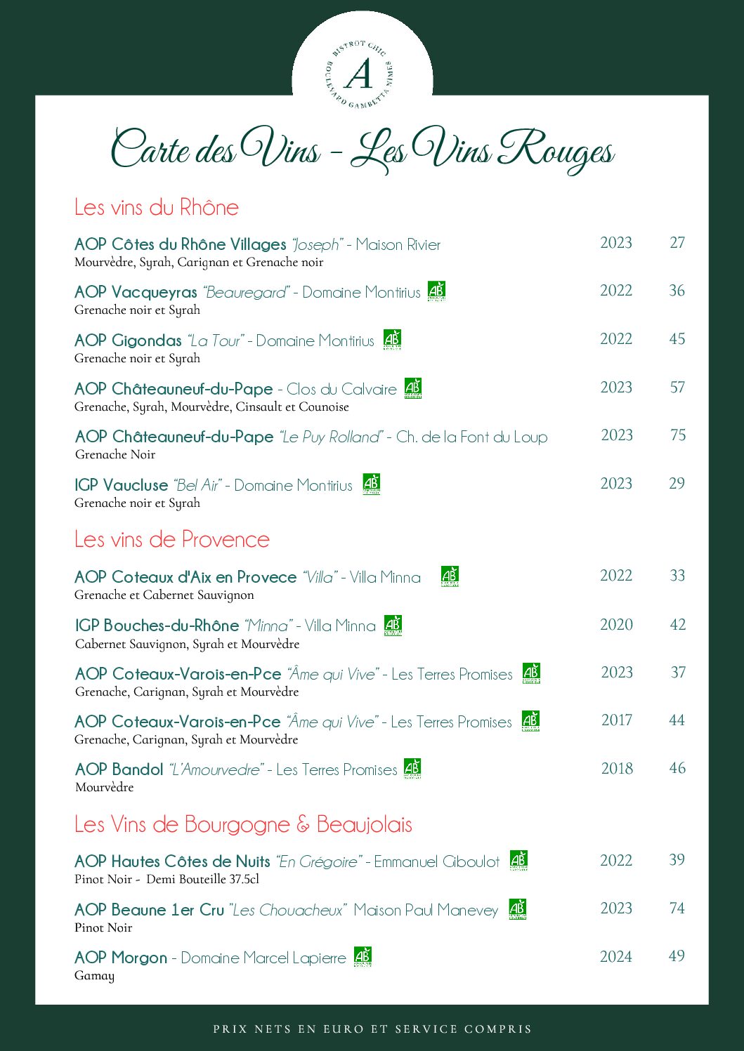 Vins Rouges au Verre